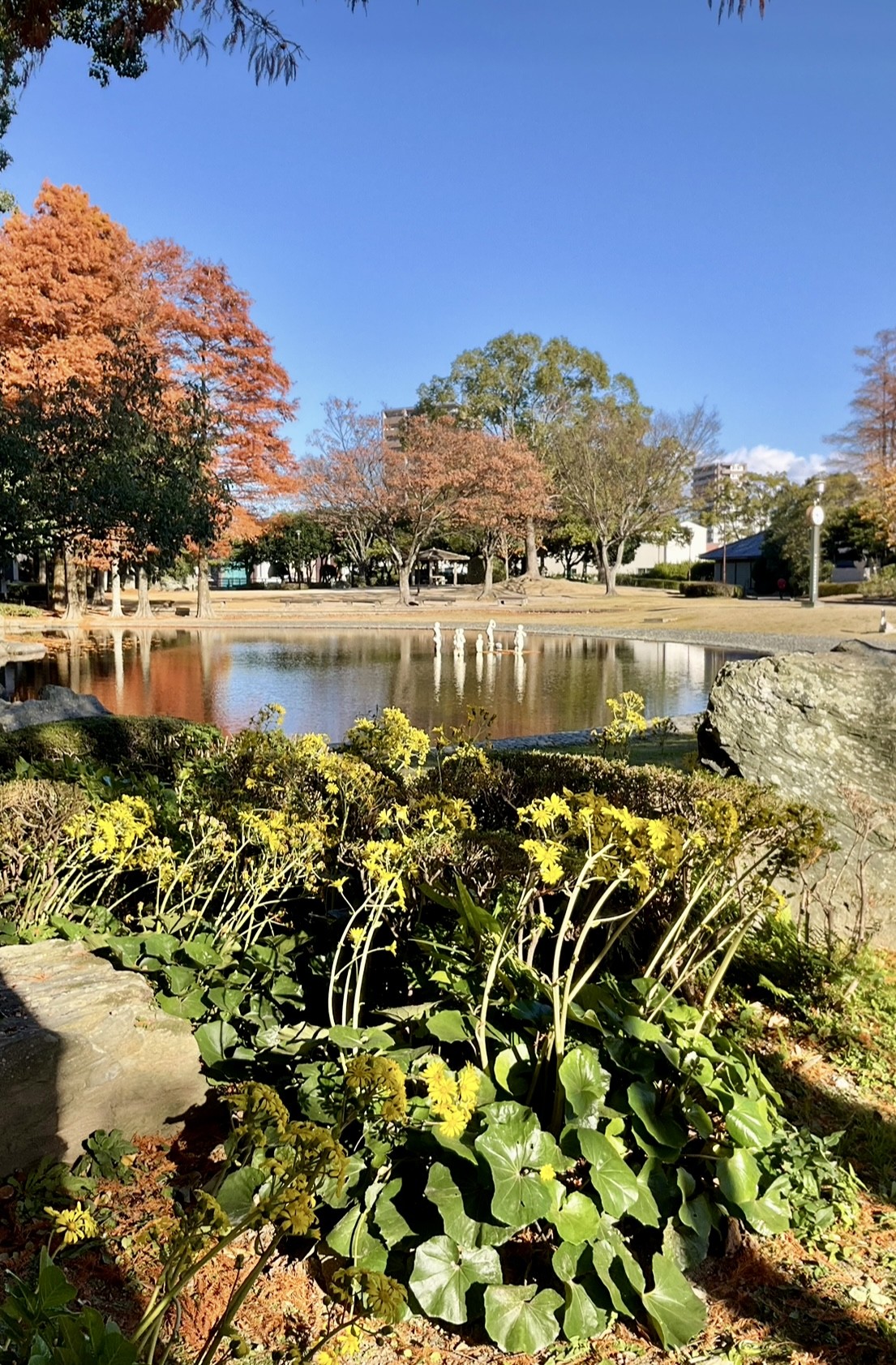 紅葉から落ち葉に変わり始める頃、徳島中央公園の所々で、