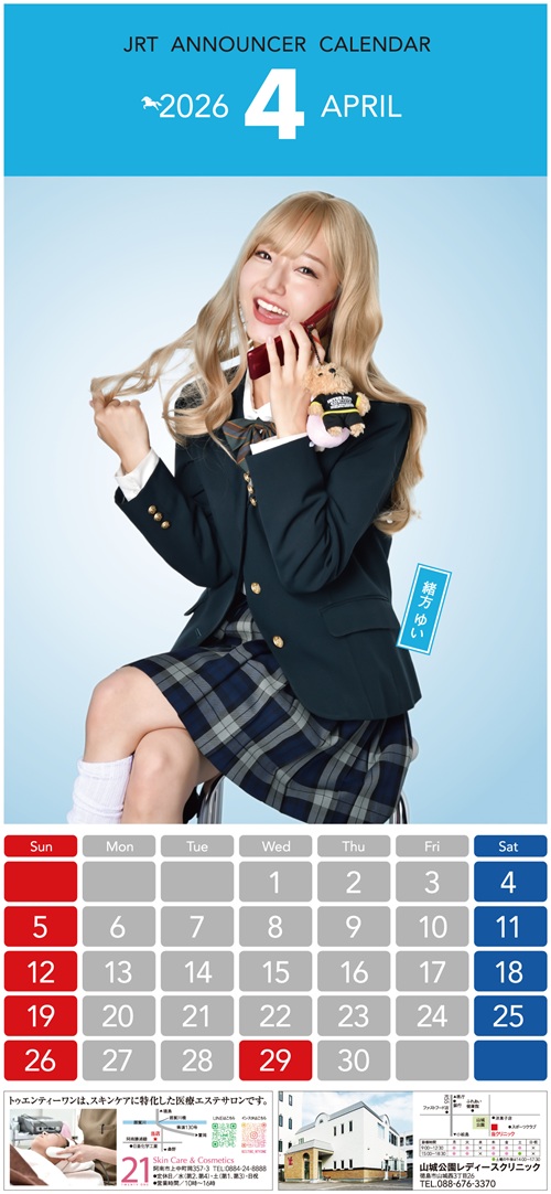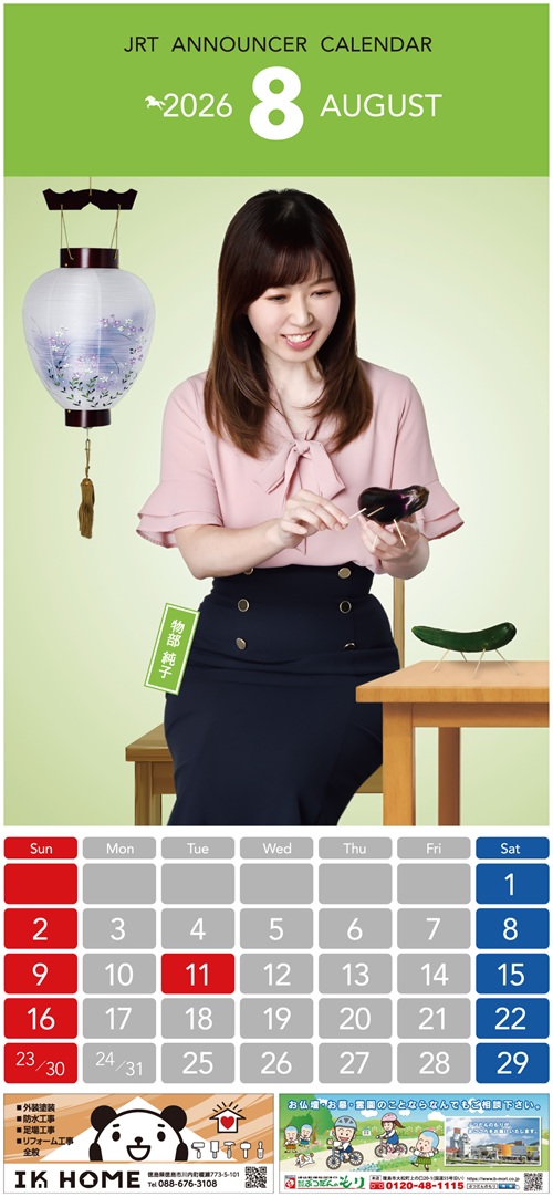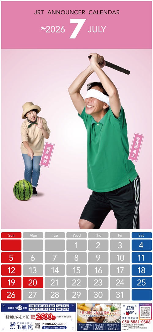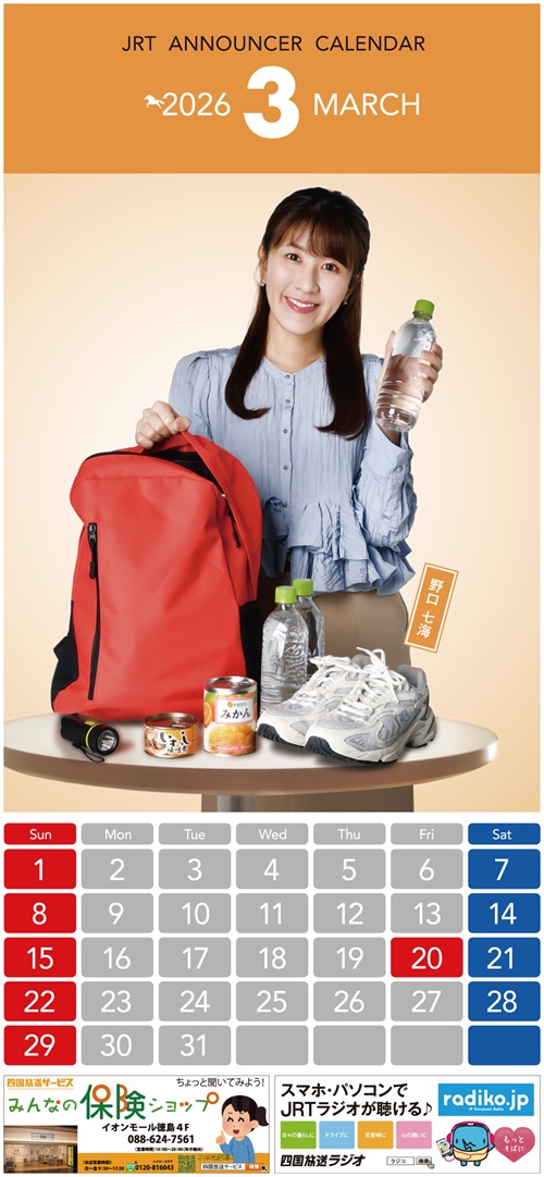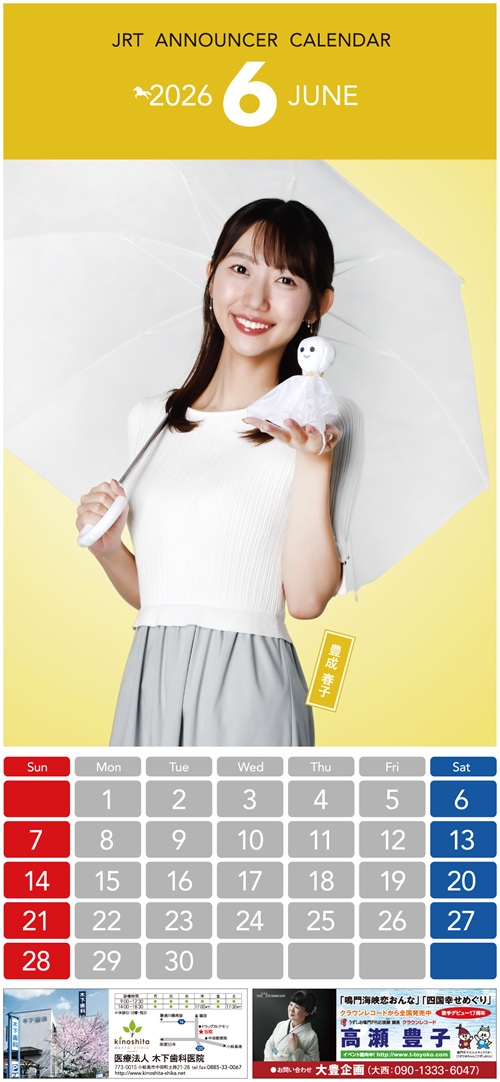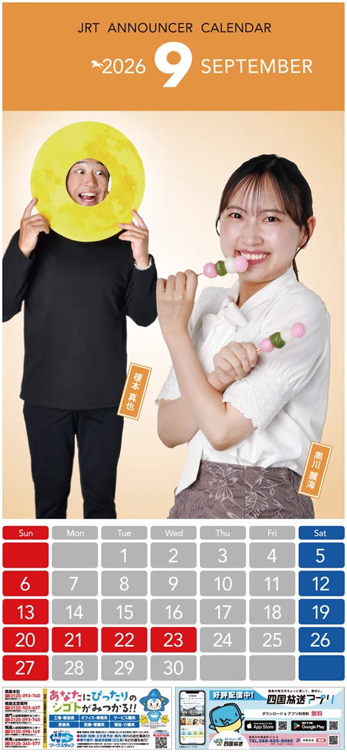 四国放送のアナウンサーが各月に登場。今回はスマホ用の壁紙もご用意しました!